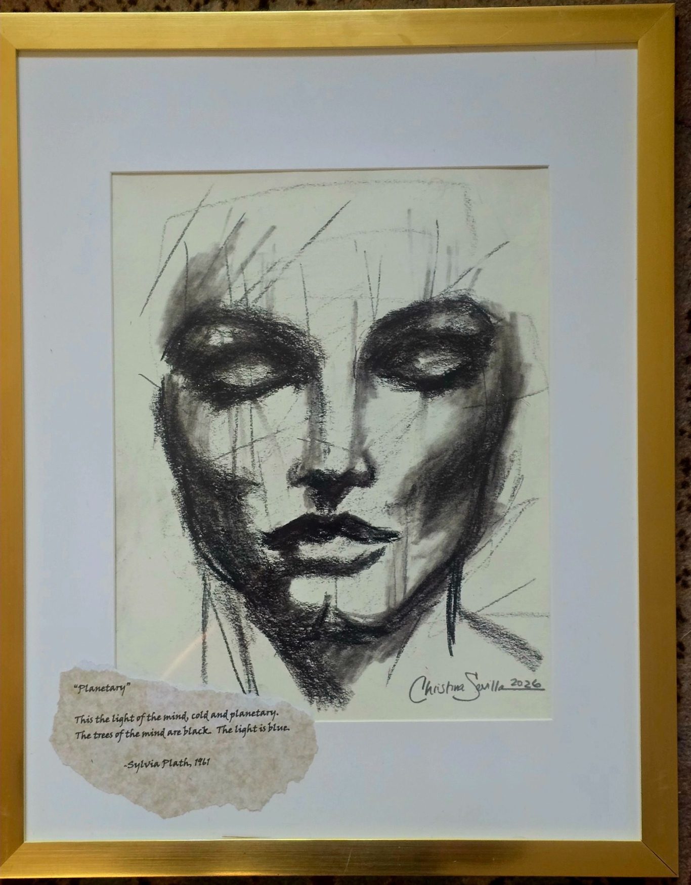8x10 charcoal drawing, matted and framed, 11x14 $300